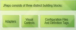 The configuration files and definition tags are interpreted by the JReps engine, which converts them into web pages and services the requesting client. Most visual controls and adapters are pre-fabricated. Customized visual controls and adapters can be created, if required.